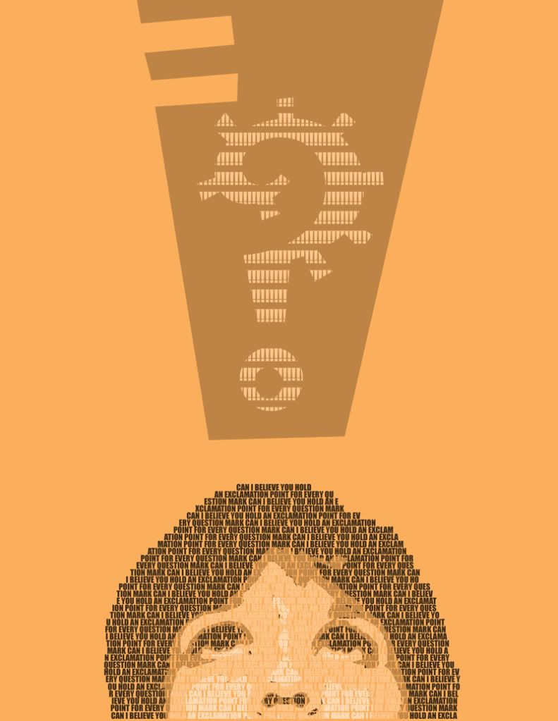 Here is a piece I completed as an assignment for an Intro to Graphic Design class. Using text from a song to create a picture was the requirement. The phrase I used was "can I believe you hold an exclamation point for every question mark?" which was from the song "Naive" by Chris Rice.